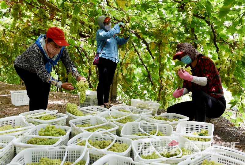 吐魯番葡萄。2022年,根據(jù)國家知識產(chǎn)權(quán)局核準,新疆吐魯番果業(yè)有限公司獲批使用“吐魯番葡萄干”“吐魯番葡萄”地理標(biāo)志專用標(biāo)志。來源:吐魯番融媒體中心